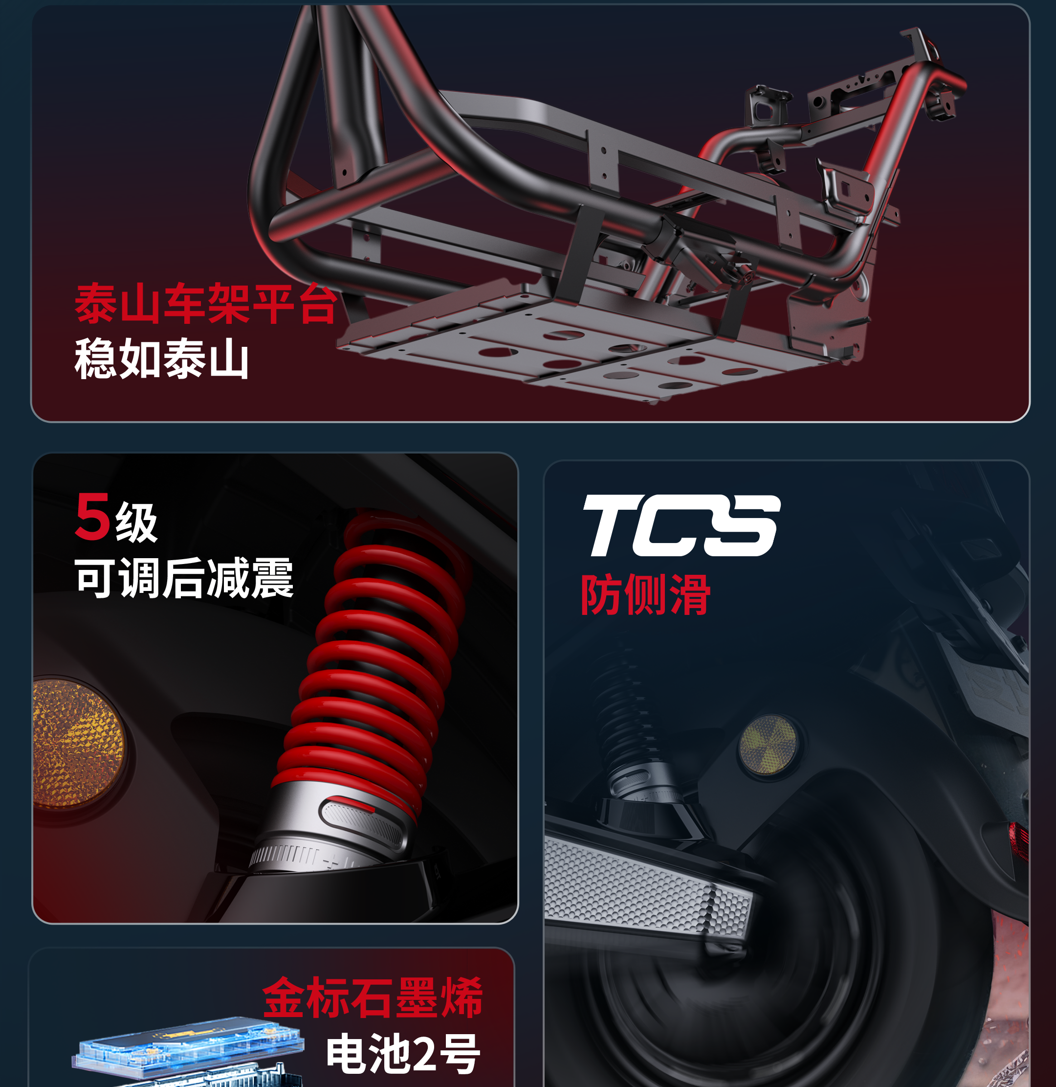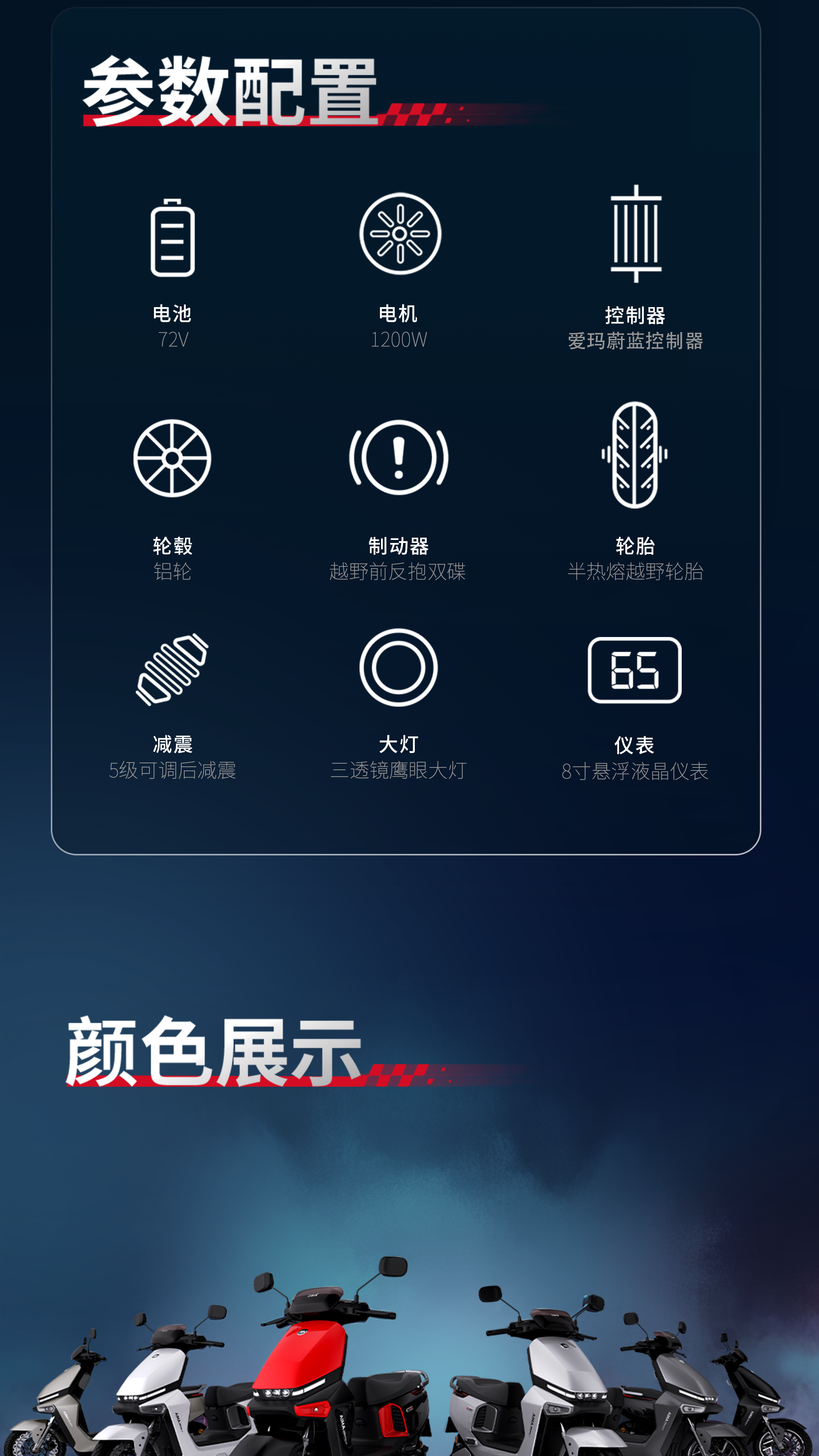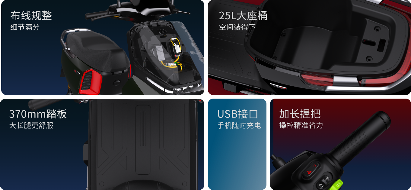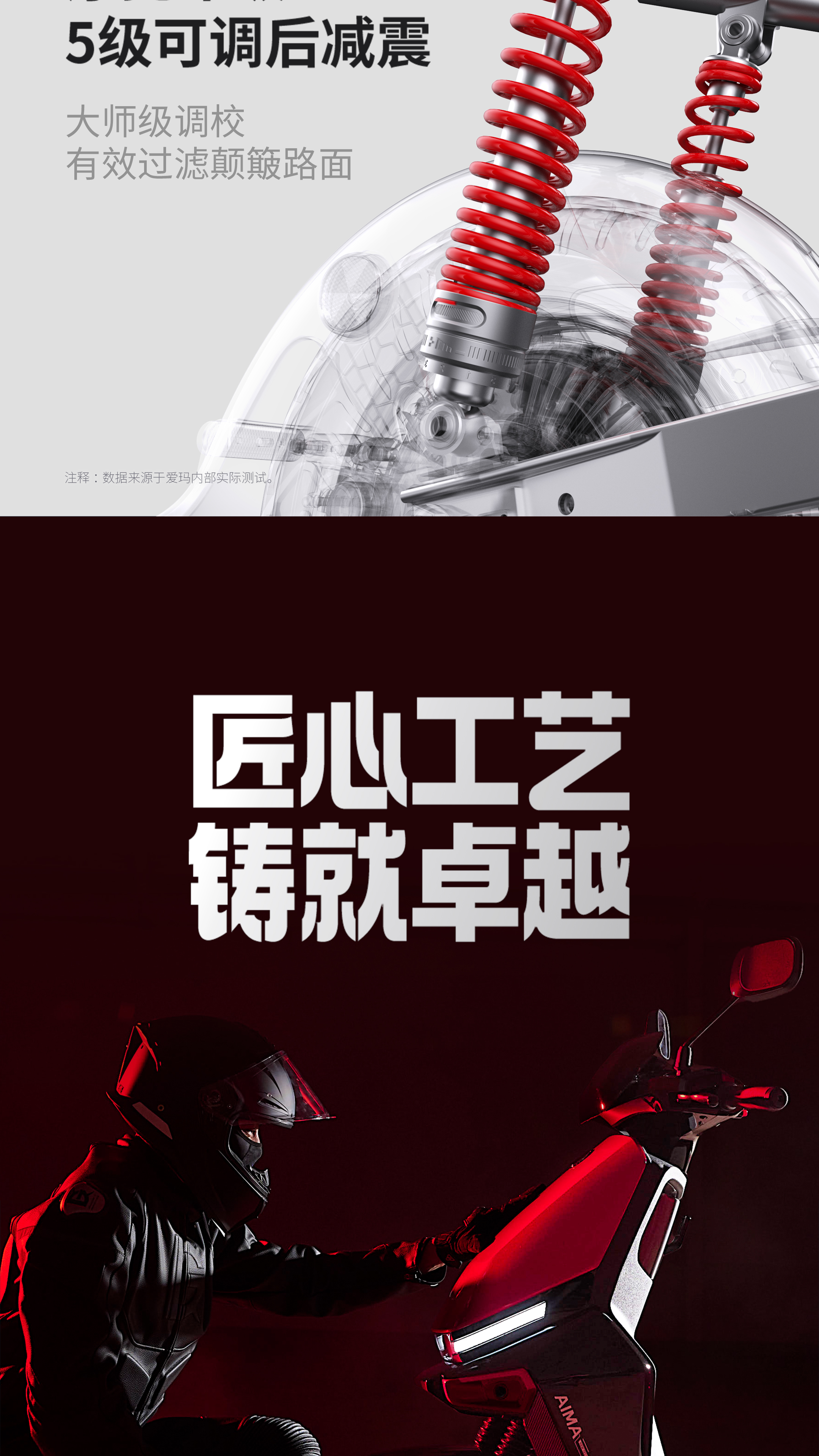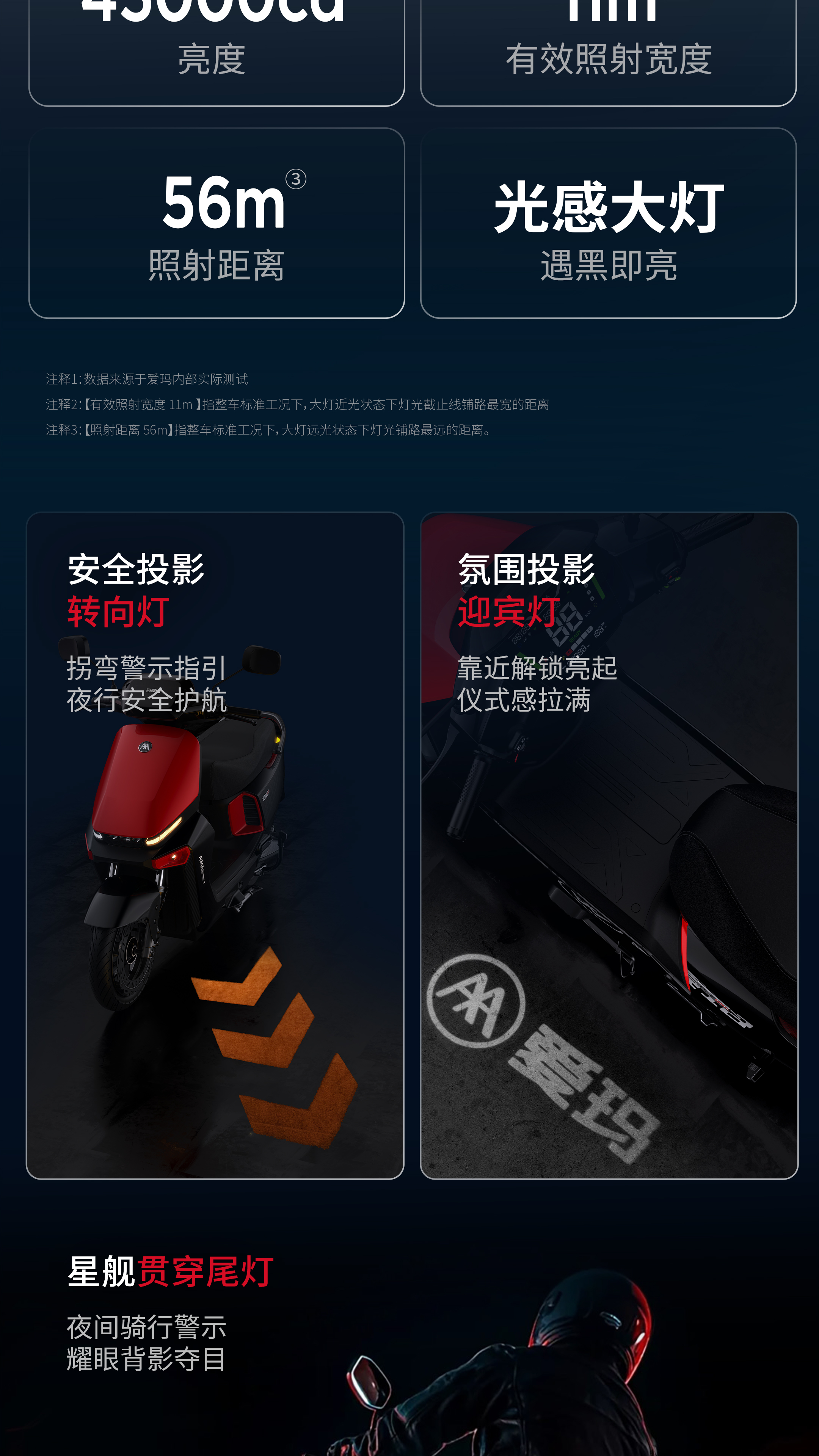 注釋2:【最高速度65km/h】指開云體育A7極速版開啟氮氣加速模式后,此模式下最高速度65km/h,持續(xù)時間為15s,實際騎行速度請根據(jù)當(dāng)?shù)氐缆窐?biāo)準(zhǔn)。